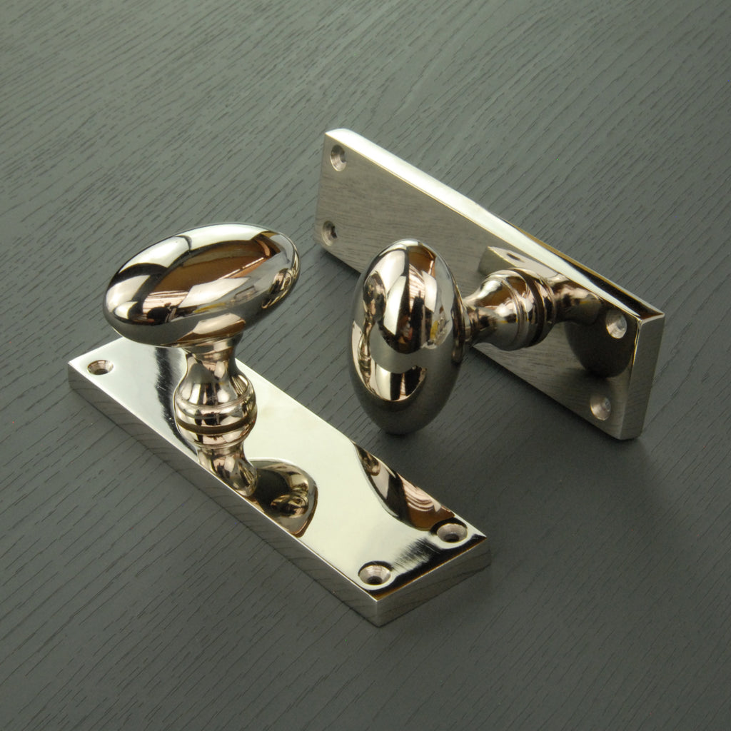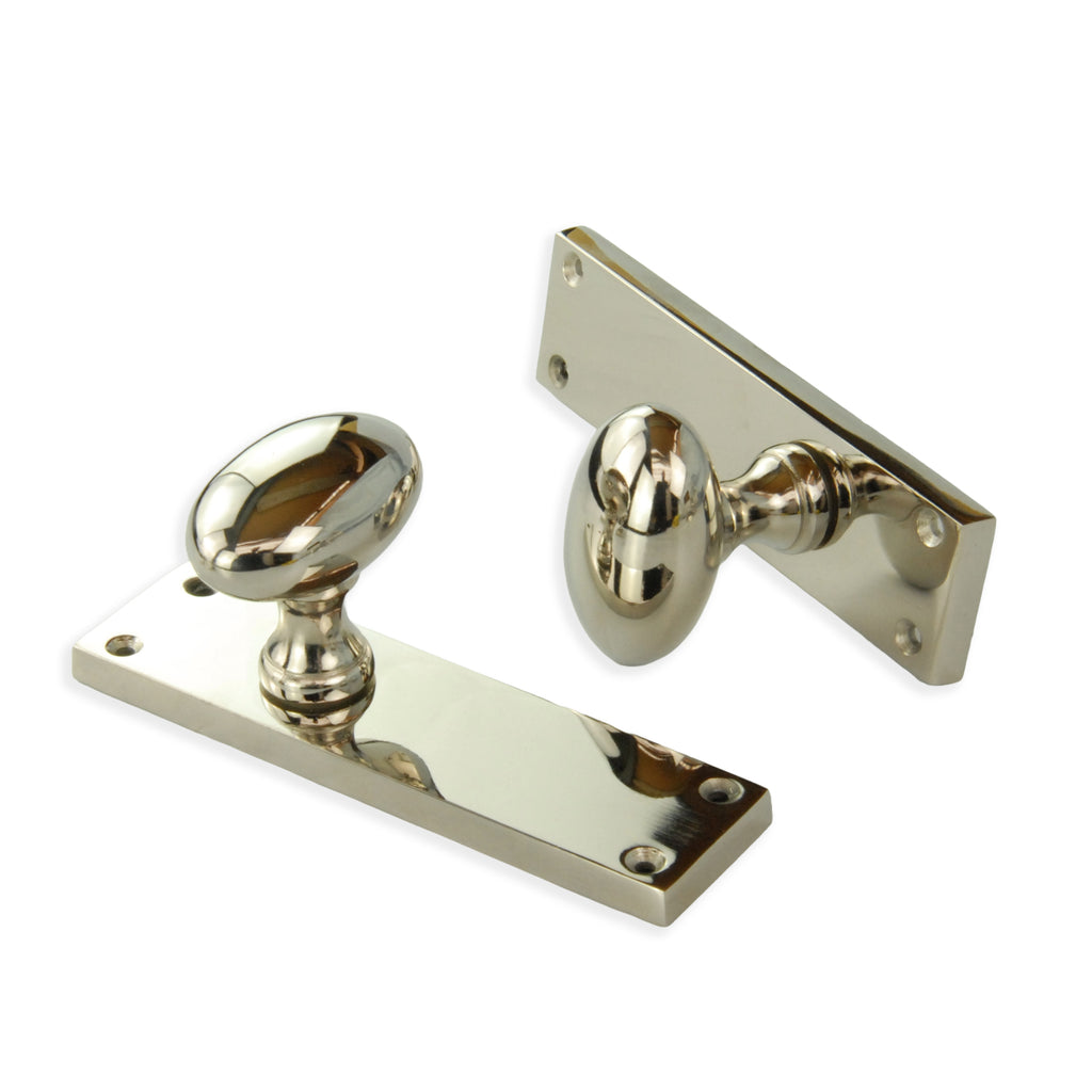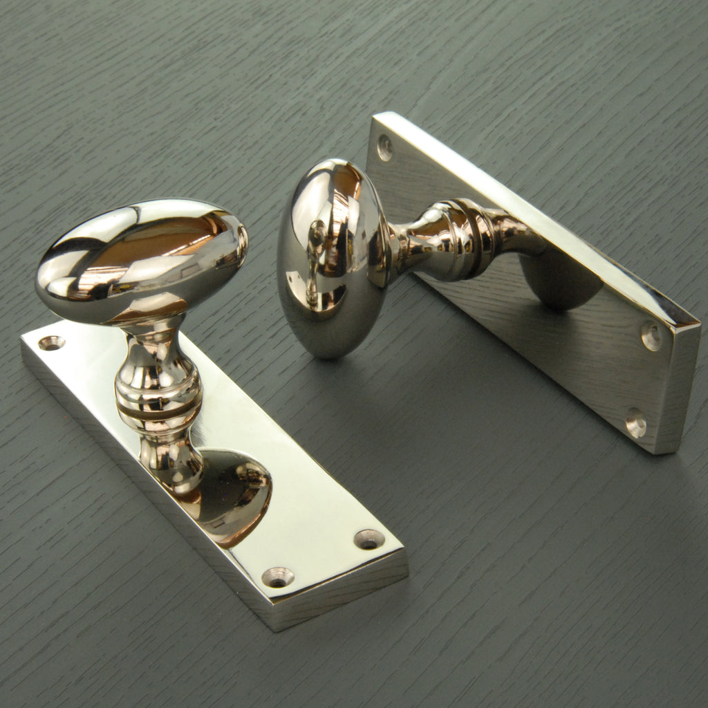 New York Door Knobs Oval Round Handles on Backplate Polished Nickel