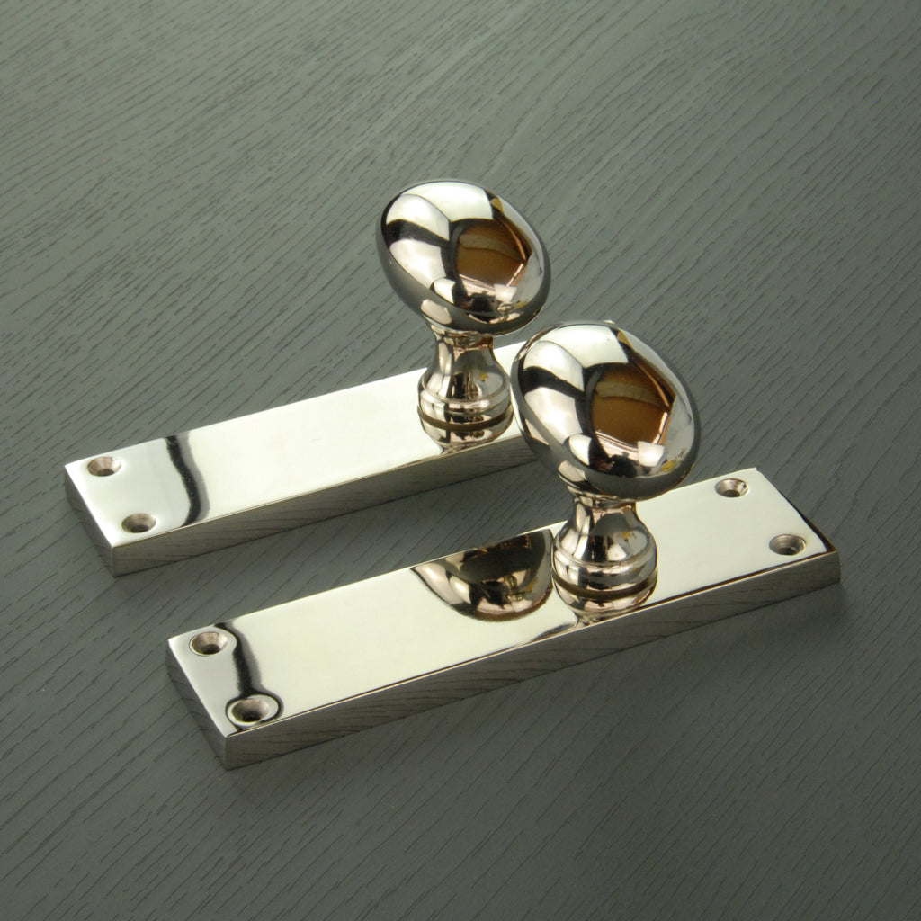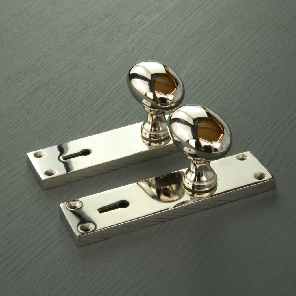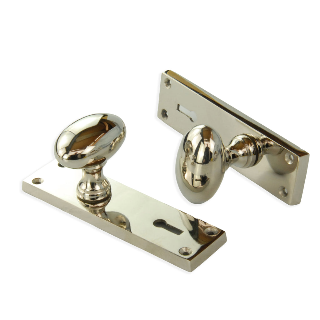 New York Door Knobs Oval Round Handles on Backplate Polished Nickel