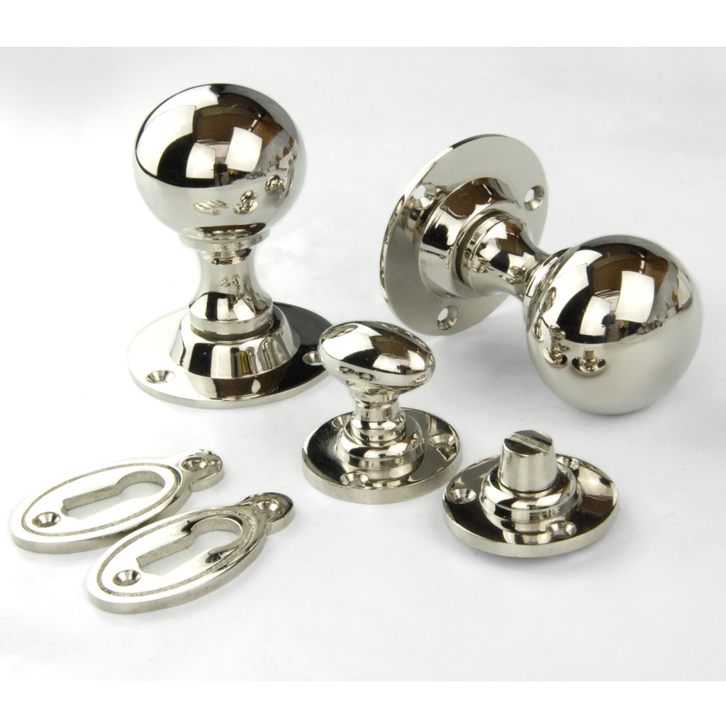 Vintage Period Style Solid Brass Round Ball Door Knobs Handles - Polished Nickel